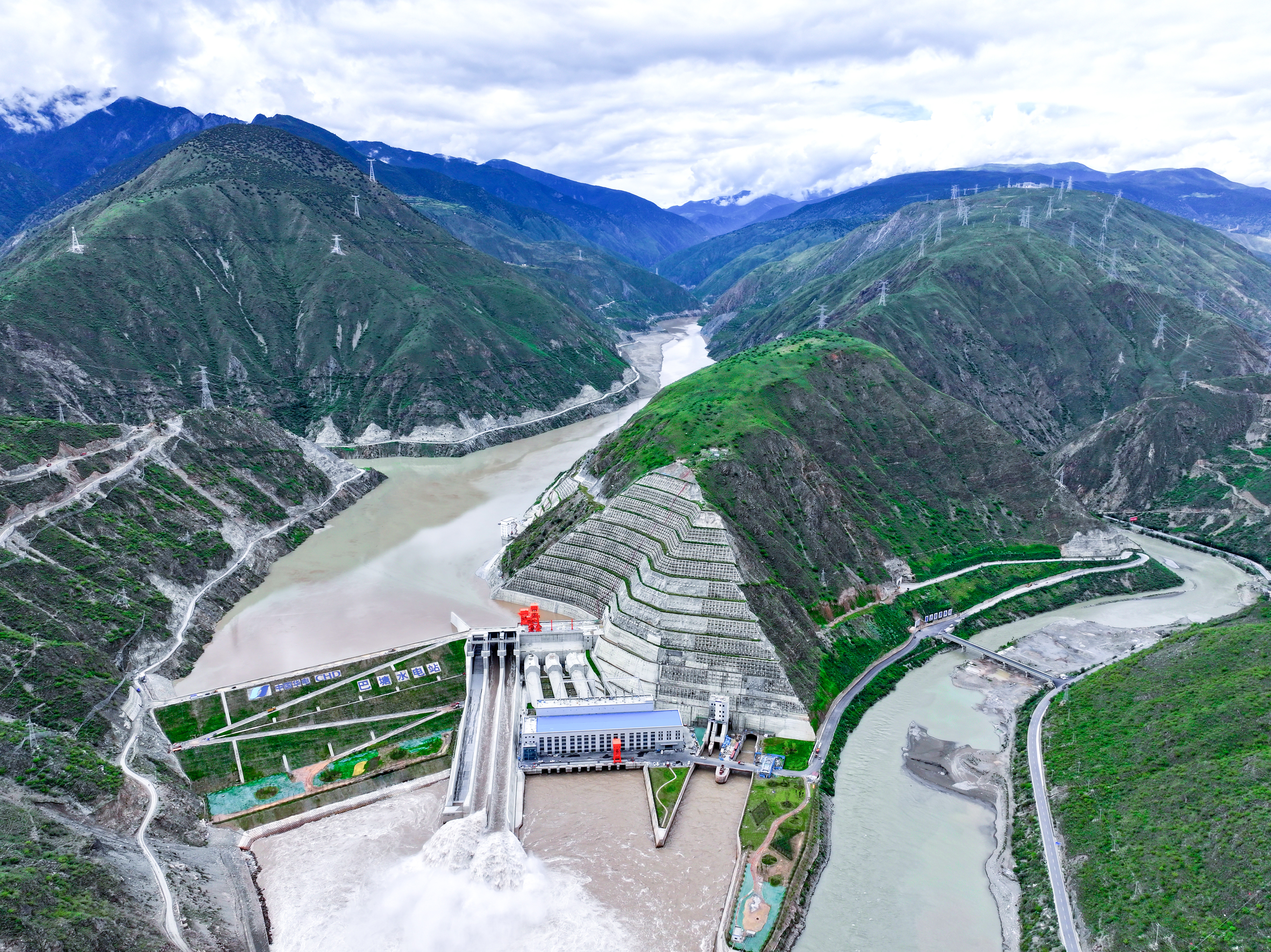 圖為318國道旁的水電明珠——華電金上巴塘水電站。該水電站位于金沙江上游藏川段,2025年7月實現75萬千瓦全容量投產,年均發(fā)電量約34億千瓦時。