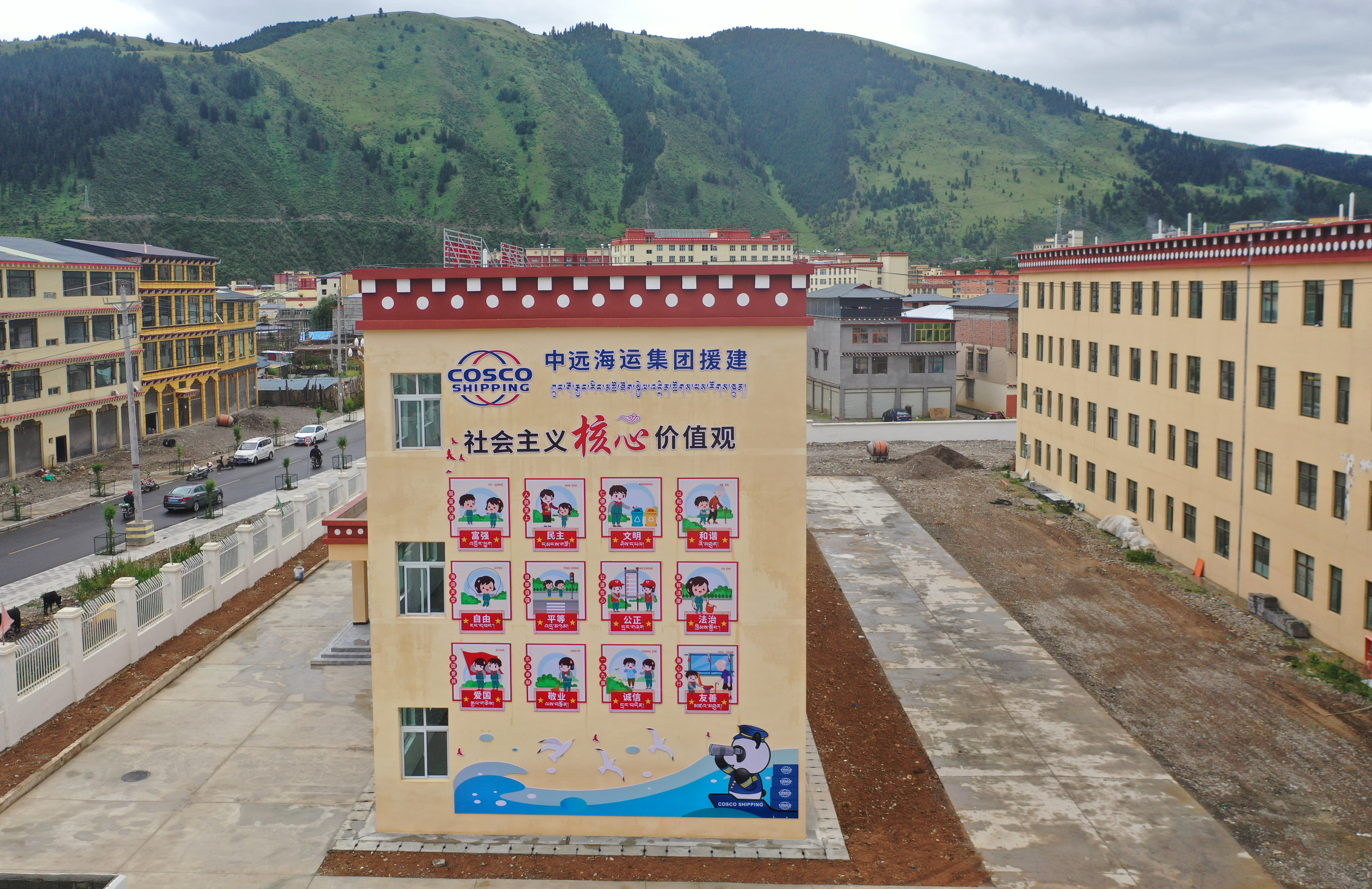 2022年,中國遠洋海運投入援藏資金406萬元,建成類烏齊縣第二小學師生綜合樓即“啟航樓”,有效提升學校教學環(huán)境,解決了941名教師及學生的住宿難問題。