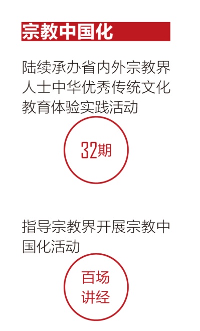 山東不斷創(chuàng)新探索宗教中國(guó)化的形式和內(nèi)容,教育引導(dǎo)宗教界人士和信教群眾培育和踐行社會(huì)主義核心價(jià)值觀、弘揚(yáng)中華優(yōu)秀傳統(tǒng)文化,不斷增進(jìn)“五個(gè)認(rèn)同”。加強(qiáng)理論研究,發(fā)揮儒家文化發(fā)祥地和紅色文化富集地優(yōu)勢(shì),成立山東省民族宗教研究會(huì)、山東宗教界優(yōu)秀傳統(tǒng)文化教育實(shí)踐基地,先后舉辦“儒學(xué)與宗教中國(guó)化”研討會(huì)、宗教中國(guó)化座談會(huì)等活動(dòng)。強(qiáng)化教育引導(dǎo),陸續(xù)承辦了32期省內(nèi)外宗教界人士中華優(yōu)秀傳統(tǒng)文化教育體驗(yàn)實(shí)踐活動(dòng),指導(dǎo)宗教界開展了宗教中國(guó)化“百場(chǎng)講經(jīng)”活動(dòng),常態(tài)化抓好宗教場(chǎng)所“四進(jìn)”活動(dòng),努力推動(dòng)宗教教義與齊魯文化有機(jī)融合,取得了春風(fēng)化雨、潤(rùn)物無(wú)聲的良好效果。
