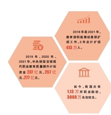 服務地方發(fā)展,還有實打實的數(shù)字支撐。2019年高職擴招116.5萬人、2020年高職擴招157.4萬人、2021年高職擴招139.4萬人,他們中有退役軍人、下崗失業(yè)人員、農(nóng)民工。高職擴招為社會培養(yǎng)高素質技術技能人才的同時,也有效緩解了嚴峻的就業(yè)形勢。