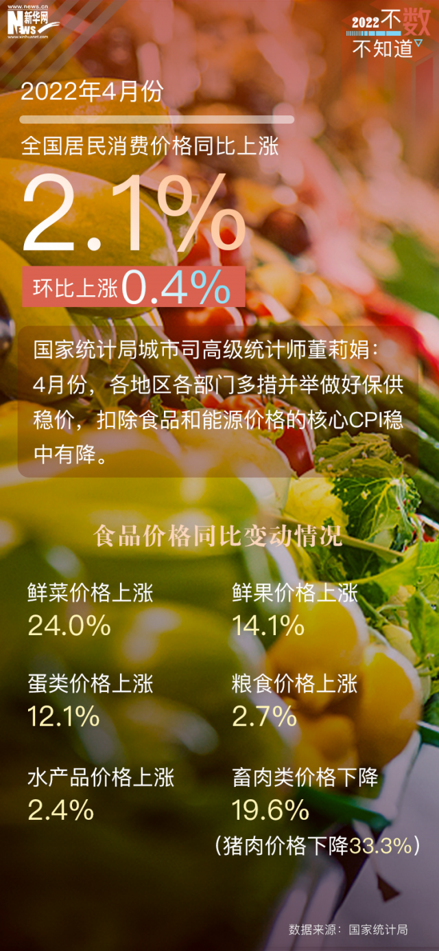 具體來(lái)看,4月份,因疫情期間物流成本上升,加上部分地方“囤貨”需求增加,鮮菜、鮮果、雞蛋和薯類價(jià)格同比分別上漲24%、14.1%、13.3%和11.8%,漲幅比上月均有擴(kuò)大;隨著生豬產(chǎn)能逐步調(diào)整、中央凍豬肉儲(chǔ)備收儲(chǔ)工作有序開(kāi)展,豬肉價(jià)格同比降幅比上月收窄8.1個(gè)百分點(diǎn)。