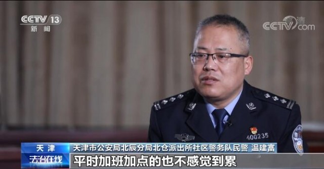 天津市公安局北辰分局北倉派出所社區(qū)警務(wù)隊(duì)民警 溫建富:管的時(shí)間也長了,老百姓這關(guān)系也融洽了,建立了深厚的感情,關(guān)系特別好,平時(shí)加班加點(diǎn)也不感到累。