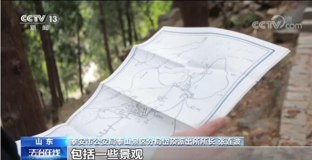 山東省泰安市公安局泰山景區(qū)分局岱頂派出所所長 張連波:我們轄區(qū)位于泰山主峰,有石碑石刻499處,有標識編號的數(shù)目1743課,包括一些特征鮮明的景觀,還有單位商鋪在這個救助圖上都有編號和標注。只要游客能提供一點點線索,我們就能很快確定位置實施救助。