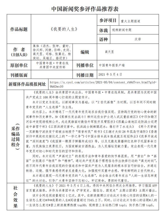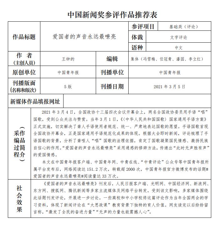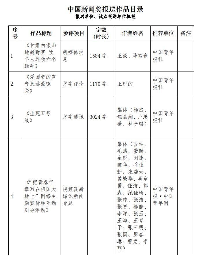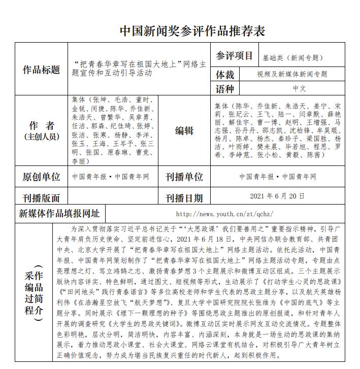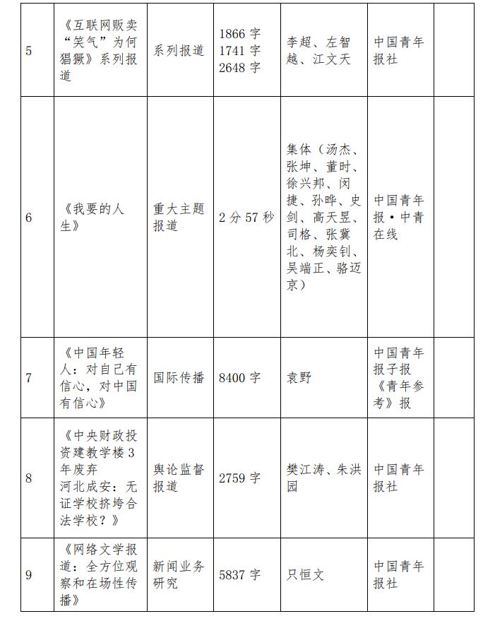 中國青年報(bào)社推薦參評(píng)第三十二屆中國新聞獎(jiǎng)報(bào)送作品公示