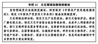 ——中國特色社會主義文化制度更加完善,文化法律法規(guī)體系和政策體系更加健全,文化治理效能進(jìn)一步提升。