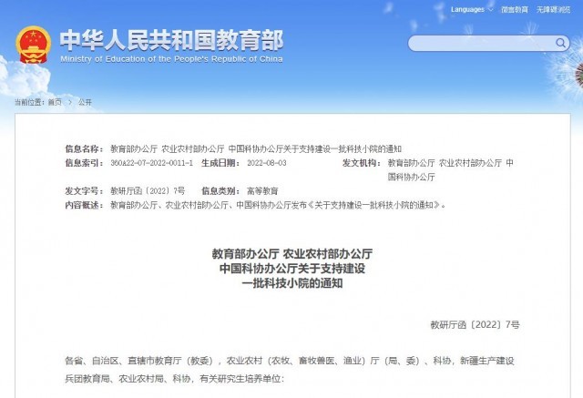 央視網(wǎng)消息:8月23日,教育部辦公廳、農(nóng)業(yè)農(nóng)村部辦公廳、中國科協(xié)辦公廳發(fā)布《關于支持建設一批科技小院的通知》。