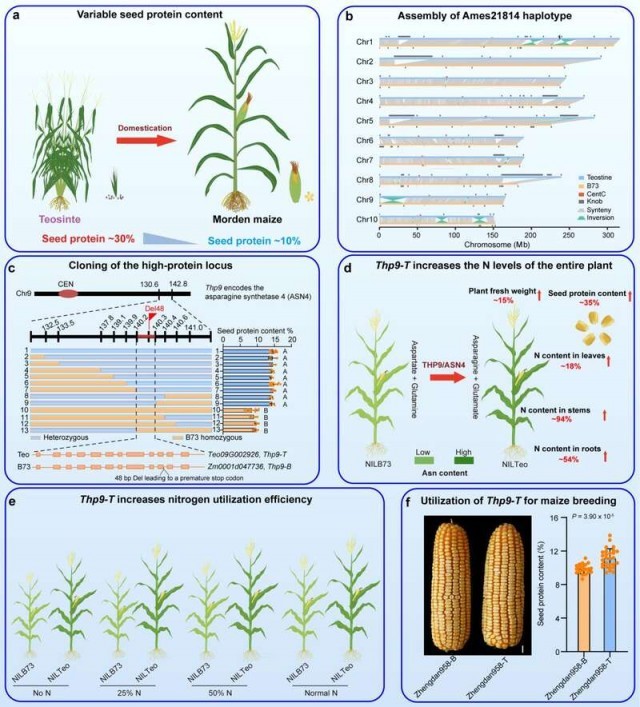 然而,野生玉米高蛋白形成的機理是長期以來懸而未決的世紀難題,控制玉米總蛋白含量和氮素高效利用的關(guān)鍵基因一直還沒找到。