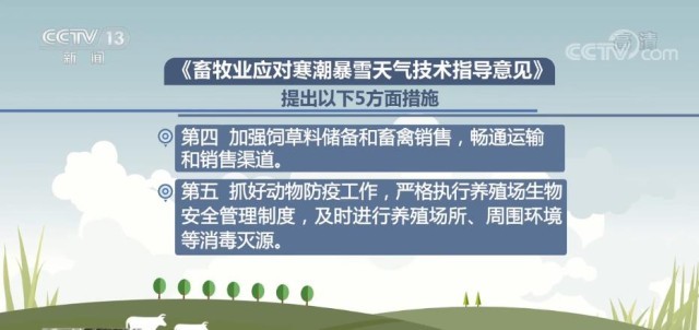 央視網(wǎng)消息:記者12月1日從農(nóng)業(yè)農(nóng)村部了解到,為了應對寒潮天氣,保障畜禽安全過冬,最大程度降低災害損失,農(nóng)業(yè)農(nóng)村部畜牧獸醫(yī)局組織畜牧生產(chǎn)專家編制了《畜牧業(yè)應對寒潮暴雪天氣技術(shù)指導意見》,提出5方面措施指導生產(chǎn)。