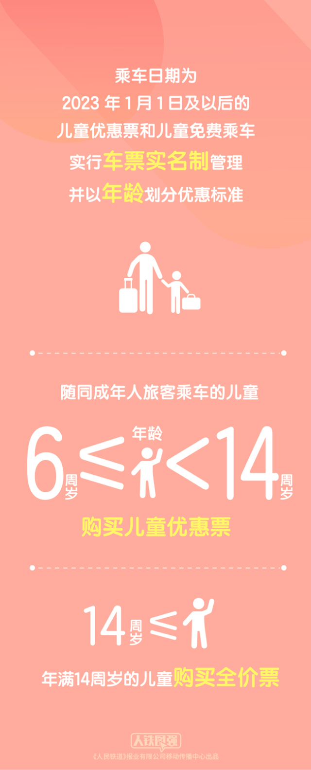 《客規(guī)》明確,乘車(chē)日期為2023年1月1日及以后的兒童優(yōu)惠票和兒童免費(fèi)乘車(chē)實(shí)行車(chē)票實(shí)名制管理并以年齡劃分優(yōu)惠標(biāo)準(zhǔn)。