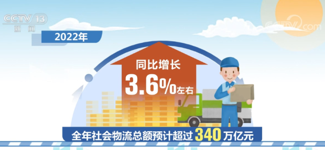 據(jù)介紹,2022年全年社會(huì)物流總額預(yù)計(jì)超過(guò)340萬(wàn)億元,同比增長(zhǎng)3.6%左右;物流業(yè)總收入預(yù)計(jì)達(dá)到12萬(wàn)億元,同比增長(zhǎng)5%左右。