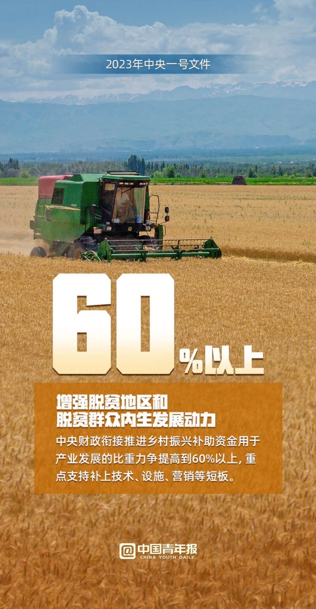 中國青年報客戶端訊(中青報·中青網(wǎng)見習記者 魏婉 制圖 程璨)“確保全國糧食產(chǎn)量保持在1.3萬億斤以上、確保脫貧勞動力就業(yè)規(guī)模穩(wěn)定在3000萬人以上……”2月13日,2023年中央一號文件正式發(fā)布,這份文件題為《中共中央 國務院關于做好2023年全面推進鄉(xiāng)村振興重點工作的意見》,全文共九個部分。文件提出,堅決守牢確保糧食安全、防止規(guī)模性返貧等底線,扎實推進鄉(xiāng)村發(fā)展、鄉(xiāng)村建設、鄉(xiāng)村治理等重點工作,加快建設農(nóng)業(yè)強國,建設宜居宜業(yè)和美鄉(xiāng)村。