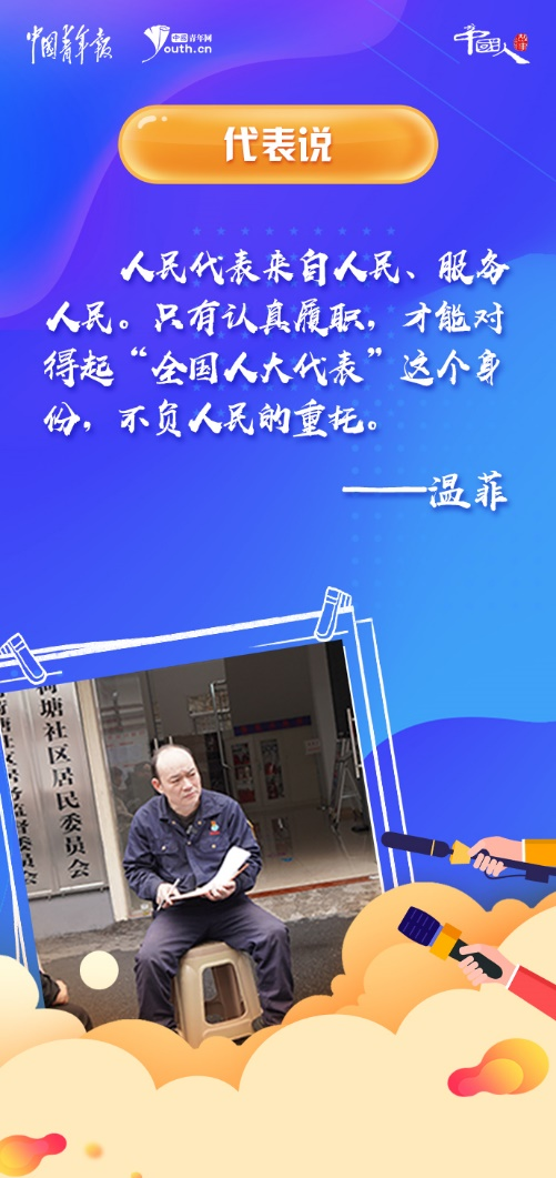 “人民代表來自人民、服務人民?!睖胤票硎荆挥姓J真履職,才能對得起“全國人大代表”這個身份,不負人民的重托。