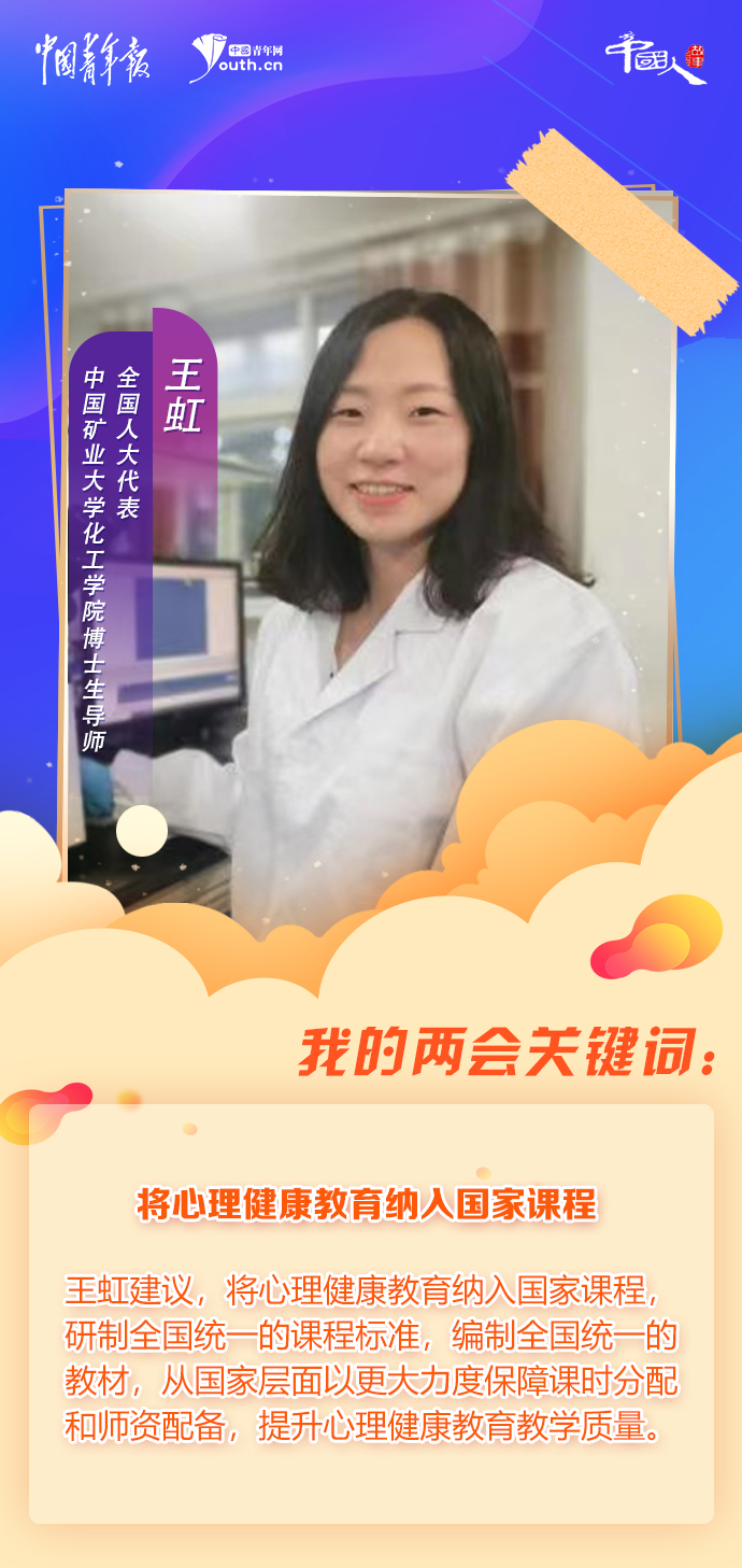 王虹建議,將心理健康教育納入國家課程,研制全國統(tǒng)一的課程標(biāo)準(zhǔn),編制全國統(tǒng)一的教材,從國家層面以更大力度保障課時(shí)分配和師資配備,提升心理健康教育教學(xué)質(zhì)量。