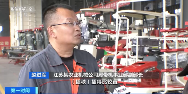 江蘇某農業(yè)機械公司履帶機事業(yè)部副部長 趙進軍:利用北斗定位技術,插秧插得比較直,誤差比較小,另外它可以節(jié)約一個人工。