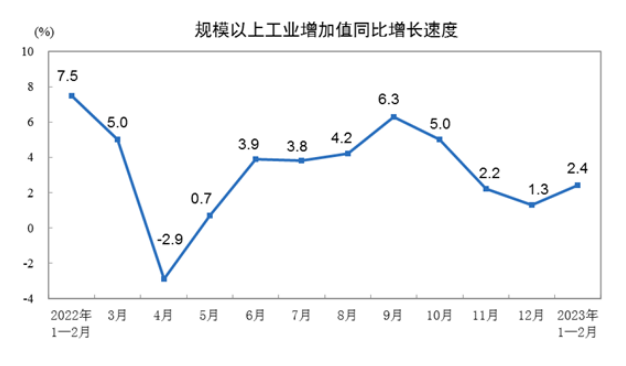 國家統(tǒng)計(jì)局3月15日發(fā)布數(shù)據(jù)顯示,今年前2個月,全國規(guī)模以上工業(yè)增加值同比增長2.4%,比2022年12月份加快1.1個百分點(diǎn);兩年平均增長4.9%。