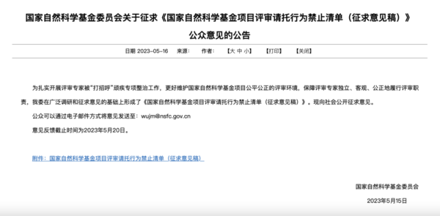 國(guó)家自然科學(xué)基金項(xiàng)目評(píng)審請(qǐng)托行為禁止清單公開(kāi)征求意見(jiàn)