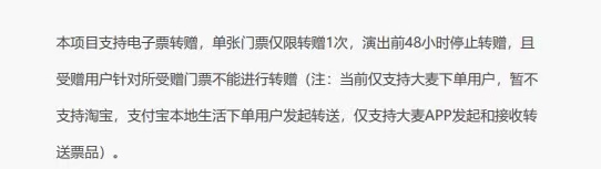 轉贈比錄信息在靈活性上差一點的是,已經(jīng)轉贈的票無法二次轉贈,如果購票者臨時有事情無法觀看演出,也只能自己承擔損失。