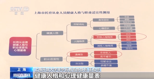 上海開(kāi)放大學(xué)非學(xué)歷教育部部長(zhǎng) 王松華:我們用專門(mén)研發(fā)的健康人格和心理健康量表,從兩個(gè)維度八個(gè)方面,用92道題目對(duì)他們進(jìn)行測(cè)量。根據(jù)測(cè)量結(jié)果,對(duì)輕度不適宜的,我們將組織心理輔導(dǎo)專家對(duì)他們進(jìn)行輔導(dǎo),對(duì)重度不適宜的人群,我們將提出勸退建議,不建議他們從事這個(gè)崗位。