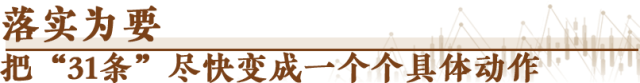 一分部署,九分落實(shí)。“31條”的最后三條,就是關(guān)于組織實(shí)施的要求。圍繞“31條”,“1+N”配套措施里的“N”,即將陸續(xù)公布,令人期待。