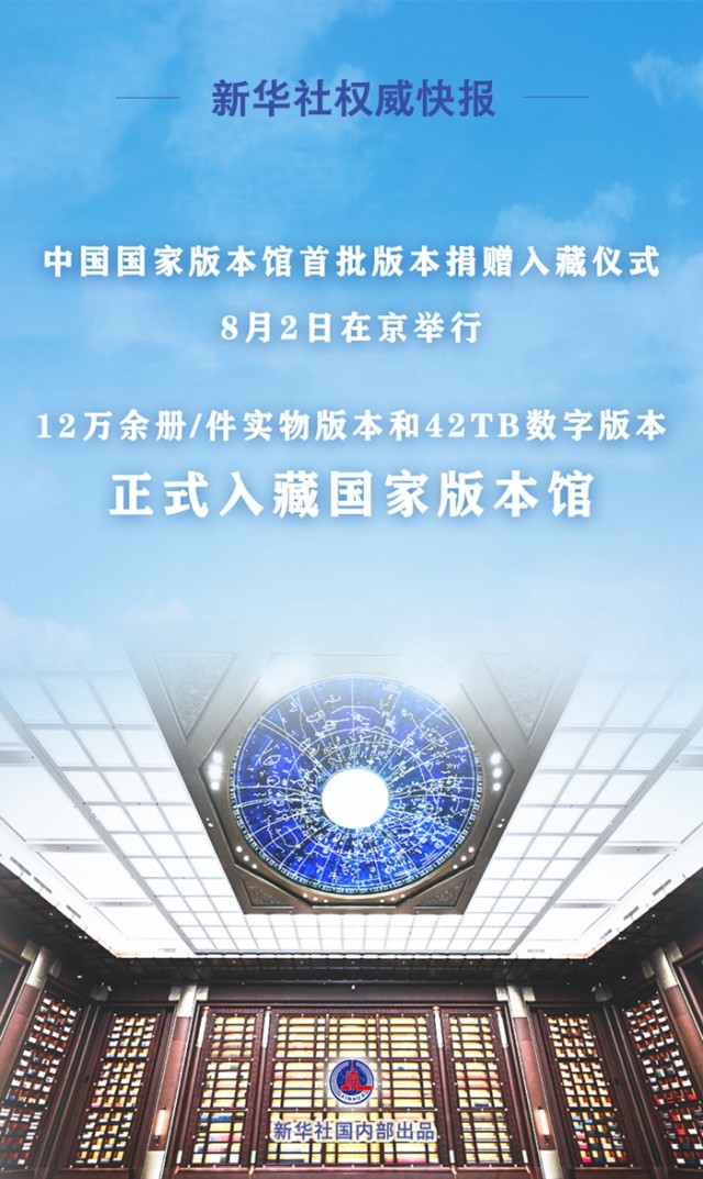 中國國家版本館首批版本捐贈(zèng)入藏儀式8月2日在京舉行
