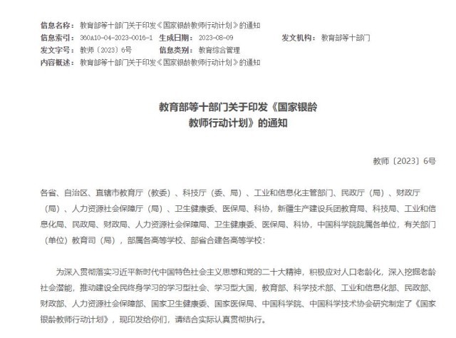 教育部等十部門:經(jīng)過3年左右,全國銀齡教師隊伍總量力爭達(dá)12萬人左右