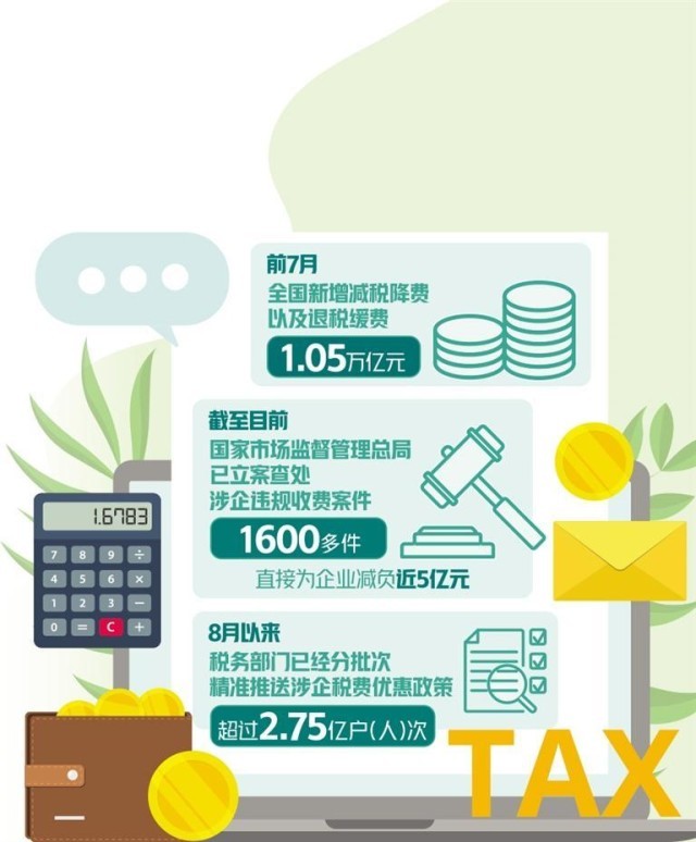 最新數(shù)據(jù)顯示,前7月,全國新增減稅降費以及退稅緩費1.05萬億元。今年以來,我國聚焦支持做強(qiáng)做優(yōu)實體經(jīng)濟(jì)、促增收擴(kuò)消費、推動高水平科技自立自強(qiáng)、支持戰(zhàn)略性新興產(chǎn)業(yè)發(fā)展等多方面舉措,打出一套稅費政策組合拳,實打?qū)嵵С制髽I(yè)紓困發(fā)展。
