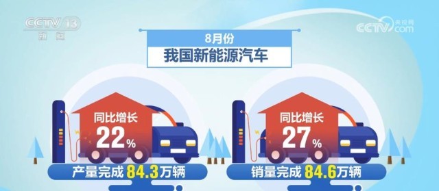 中國汽車工業(yè)協(xié)會的數(shù)據(jù)顯示,8月份,我國新能源汽車產(chǎn)銷量分別完成84.3萬輛和84.6萬輛,同比分別增長22%和27%,市場占有率達(dá)到32.8%。1月—8月,新能源汽車產(chǎn)銷分別完成543.4萬輛和537.4萬輛,同比分別增長36.9%和39.2%。