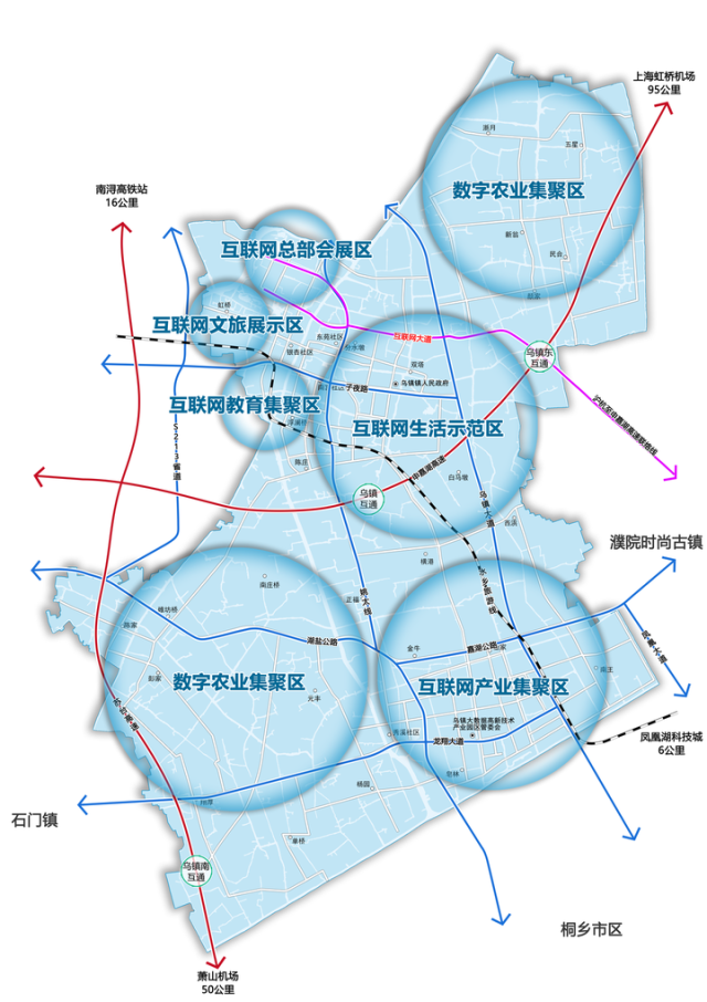 這份期待源自它獨(dú)有的氣質(zhì):互聯(lián)網(wǎng)基因。作為中國(guó)互聯(lián)網(wǎng)對(duì)話世界的窗口,烏鎮(zhèn)歷經(jīng)十年沉淀,梳理了一個(gè)新的奮斗坐標(biāo)——打造烏鎮(zhèn)“國(guó)際互聯(lián)網(wǎng)小鎮(zhèn)”,以110.93平方公里的烏鎮(zhèn)地圖起筆,劃出互聯(lián)網(wǎng)總部會(huì)展區(qū)、互聯(lián)網(wǎng)文旅展示區(qū)、互聯(lián)網(wǎng)生活示范區(qū)、互聯(lián)網(wǎng)產(chǎn)業(yè)集聚區(qū)、互聯(lián)網(wǎng)教育集聚區(qū)和數(shù)字農(nóng)業(yè)集聚區(qū)六大區(qū)塊。此外,還布局打造烏鎮(zhèn)數(shù)據(jù)要素產(chǎn)業(yè)園,乘“數(shù)”飛向新藍(lán)海。