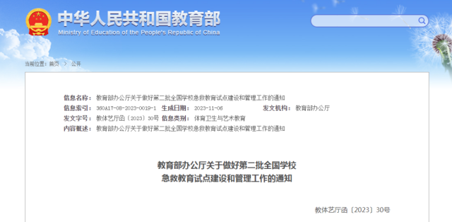 通知一并發(fā)布《第二批全國學(xué)校急救教育試點(diǎn)工作指南》,從總體要求、重點(diǎn)任務(wù)兩個方面部署推進(jìn)試點(diǎn)工作。