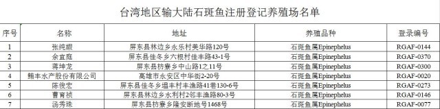 各海關(guān)自2023年12月22日起恢復(fù)受理臺(tái)灣地區(qū)石斑魚報(bào)關(guān),并依法依規(guī)實(shí)施檢驗(yàn)檢疫。同時(shí),請及時(shí)將上述情況通知轄區(qū)內(nèi)相關(guān)企業(yè)。