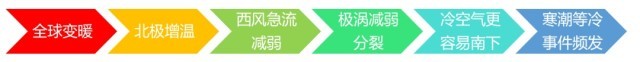赤道與極地之間存在巨大溫差,這種差異促使極圈外圍形成了一圈強(qiáng)勁的西風(fēng),環(huán)繞在極地周圍,它被稱之為西風(fēng)急流。西風(fēng)急流就像“圍欄”一樣,約束著極地的冷空氣。穩(wěn)定的極渦被強(qiáng)大的西風(fēng)急流限制在北極地區(qū),在全球變暖背景下,北極地區(qū)增溫速度是全球的2-3倍。北極地區(qū)增溫,與中低緯度氣溫差減弱,難以維持強(qiáng)大的西風(fēng)急流,極渦內(nèi)的冷空氣變得“躁動不安”,更容易分裂南下。北極來的冷空氣,其溫度遠(yuǎn)遠(yuǎn)低于我們生活的中低緯度地區(qū),多次出現(xiàn)的寒潮天氣讓我們感到“冷冷冷”。
