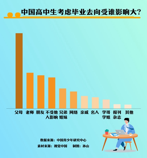 孫宏艷:首先,學(xué)校是職業(yè)生涯規(guī)劃教育的主要部門,學(xué)校把職業(yè)生涯規(guī)劃教育搞好了,學(xué)生能對(duì)自己和職業(yè)有準(zhǔn)確的認(rèn)知和定位,他們自然會(huì)選擇合適的職業(yè)和工作地。從這次的調(diào)查數(shù)據(jù)看,中國(guó)高中生已比過(guò)去更理性了,就業(yè)地首選已從北上廣這樣的國(guó)際大城市到所在地中心城市了。未來(lái),隨著我國(guó)鄉(xiāng)村振興等政策的推進(jìn)和城市的發(fā)展,青年也許會(huì)更愿意到所在地縣鎮(zhèn)村等基層去工作。這不僅依賴于政策和城市的發(fā)展,更依賴于青年對(duì)自我和職業(yè)的準(zhǔn)確定位。