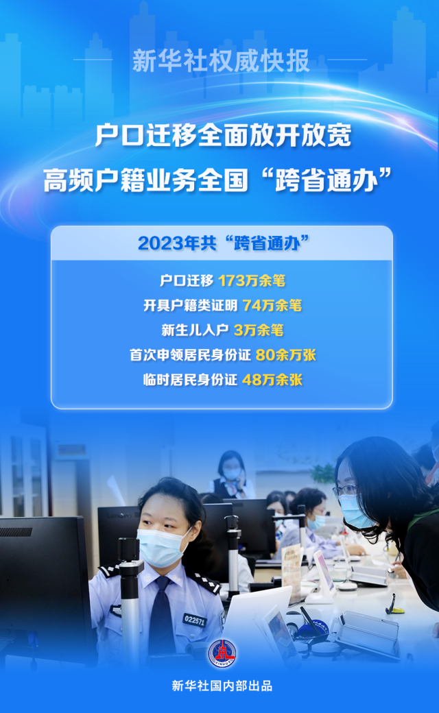 2023年,公安部組織全面實(shí)施戶口遷移、開具戶籍類證明等高頻戶政業(yè)務(wù)“跨省通辦”。截至目前,全國范圍已實(shí)現(xiàn)首次申領(lǐng)居民身份證、申領(lǐng)臨時居民身份證及戶口遷移和開具戶籍類證明“跨省通辦”。