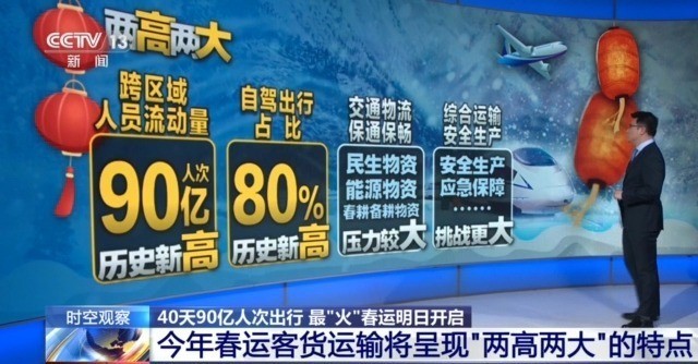 根據(jù)交通運(yùn)輸部此前發(fā)布的數(shù)據(jù),今年春運(yùn)期間全國(guó)跨區(qū)域人員流動(dòng)量預(yù)計(jì)將達(dá)到90億人次,創(chuàng)歷史新高。