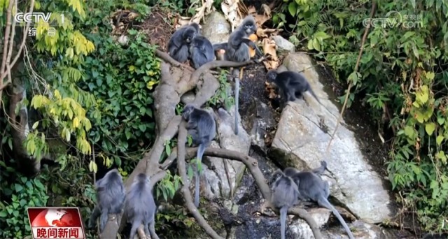 原來爭相帶娃是菲氏葉猴家族獨(dú)特的育兒方式。菲氏葉猴聚群而居,每個(gè)家庭成員都想和“小金猴”有更多親密接觸。此外,據(jù)護(hù)林員介紹,這些菲氏葉猴還有著“謙謙君子”的美譽(yù)。
