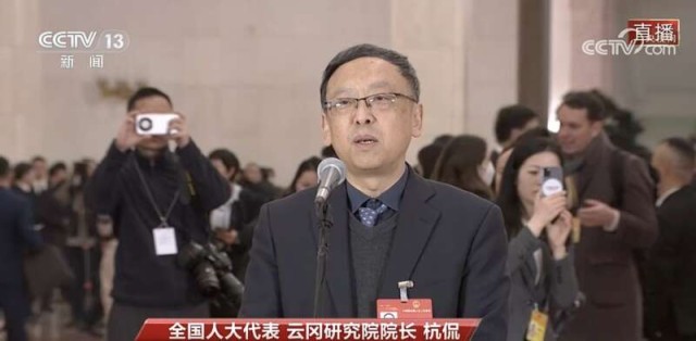 3月5日,十四屆全國(guó)人大二次會(huì)議首場(chǎng)“代表通道”上,全國(guó)人大代表、云岡研究院院長(zhǎng)杭侃接受采訪(fǎng)。直播截圖
