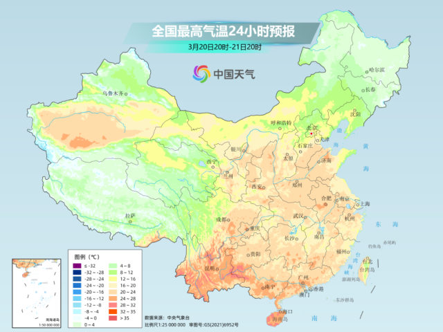 西北地區(qū)東部、華北、黃淮、江淮等地,氣溫高點(diǎn)大多將出現(xiàn)在明后兩天,最高氣溫20℃線最北能推進(jìn)到華北中部,黃淮、江淮一帶最高氣溫將達(dá)到25℃上下。像是蘭州,21日最高氣溫可能達(dá)到23℃,如果兌現(xiàn)將是今年首次突破20℃。西安22日最高氣溫或升至24℃,暖出常年5月上旬的感覺(jué)。