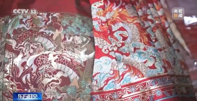 魏平安:因為今年過年是龍年,我們特意設計了兩款比較好看的龍圖案馬面裙,沒想到它們兩個都爆了。這款就是比較直接一點,就是有一個很大的龍的刺繡加了一些龍紋,加了一些花、牡丹花之類的。