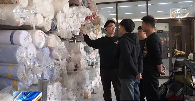 魏平安介紹,完備的產業(yè)鏈正是當年吸引他回鄉(xiāng)創(chuàng)業(yè)的重要原因之一。他建議我們去面料輔料一條街轉轉,他說空著手在這走5公里就能做出一件漢服。而現在這里依然是他采購面料輔料的地方。