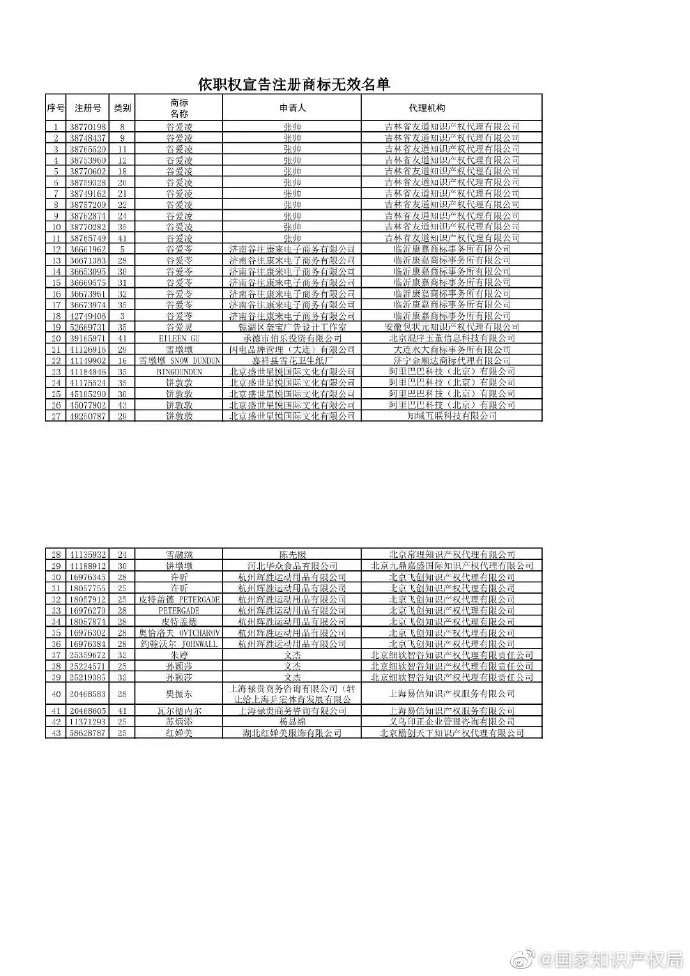 中新網(wǎng)2月14日電 國(guó)家知識(shí)產(chǎn)權(quán)局14日在其官方微博發(fā)布聲明稱,國(guó)家知識(shí)產(chǎn)權(quán)局對(duì)惡意搶注北京2022年冬奧會(huì)和冬殘奧會(huì)吉祥物、運(yùn)動(dòng)健兒姓名等行為予以堅(jiān)決打擊,依據(jù)《奧林匹克標(biāo)志保護(hù)條例》、《商標(biāo)法》第十條第一款第(八)項(xiàng)等規(guī)定,對(duì)第41128524號(hào)“冰墩墩”、第62453532號(hào)“谷愛凌”等429件商標(biāo)注冊(cè)申請(qǐng)予以駁回;依據(jù)《商標(biāo)法》第四十四條第一款規(guī)定,對(duì)已注冊(cè)的第41126916號(hào)“雪墩墩”、第38770198號(hào) “谷愛凌”等43件商標(biāo)依職權(quán)主動(dòng)宣告無(wú)效。