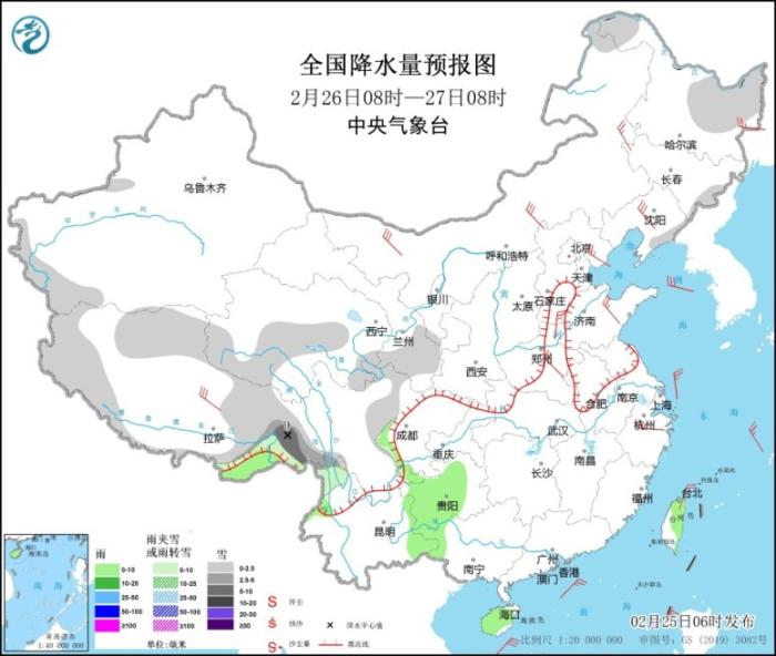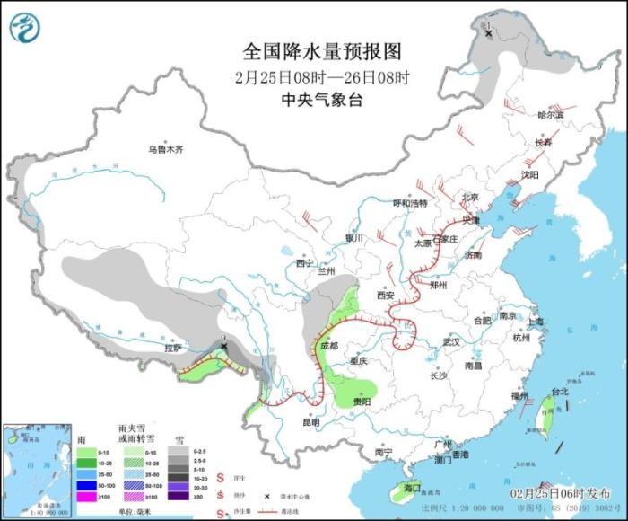 具體來看,中央氣象臺預(yù)計,今天,內(nèi)蒙古東北部、黑龍江西北部、新疆南疆西部山區(qū)、西藏大部、甘肅南部、川西高原東部、云南西北部等地部分地區(qū)有小到中雪或雨夾雪,其中,西藏東南部局地有大雪(5~9毫米)。西藏東南部、甘肅南部、陜西西南部、四川盆地西部、貴州中西部、云南西北部、海南島大部、臺灣島東部等地部分地區(qū)有小雨。