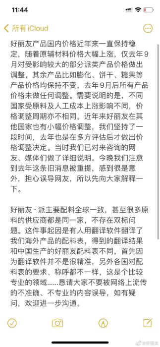 好麗友回應(yīng)漲價和配料雙標:不同國家成本上漲影響不同