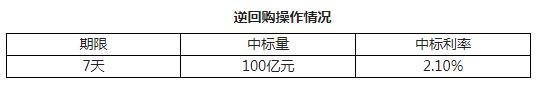 央行11日開展100億元7天逆回購操作