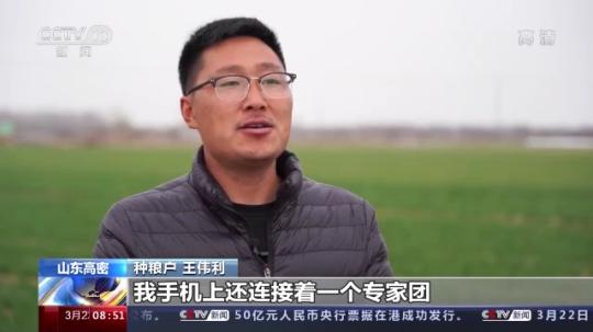山東高密市種糧戶 王偉利:現(xiàn)在不是我一個人在種地,我手機上還連接著一個專家團。根據(jù)他們的指導,在冷空氣來臨之前,我早就給小麥澆上了水,土地沒有裂縫,冷空氣就進不去。