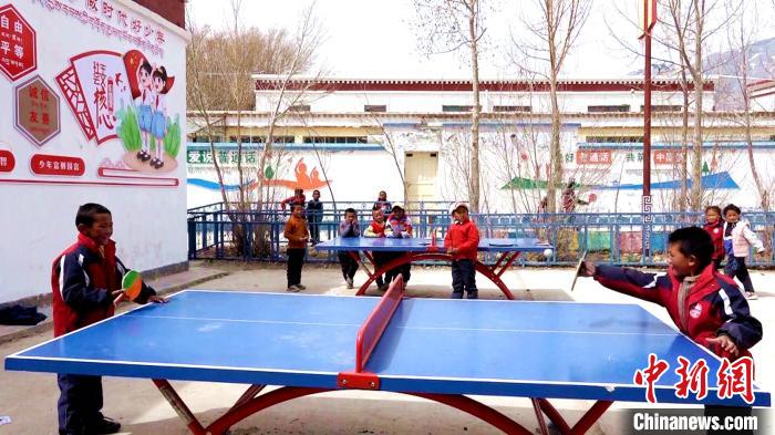 圖為多油完小學(xué)生在課余時間打乒乓球?!∝暽@?攝