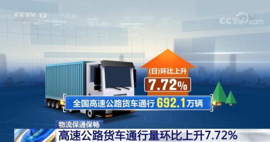 央視網(wǎng)消息:最新的全國物流保通保暢運行數(shù)據(jù)顯示,全國貨運物流有序運行,高速公路貨車通行量持續(xù)恢復(fù)。