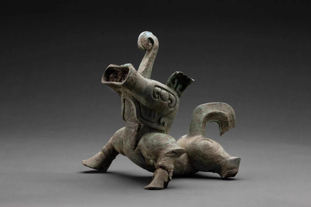 這只“萌獸”出土于三星堆3號“祭祀坑”坑底,長28.5厘米、高26.4厘米、寬23厘米,大大的眼睛,嘴巴像一個(gè)扁長的“喇叭”,頭上還有一撮“呆毛”,體表有云雷紋條帶裝飾,整體造型昂首挺胸,看起來壯實(shí)活潑。