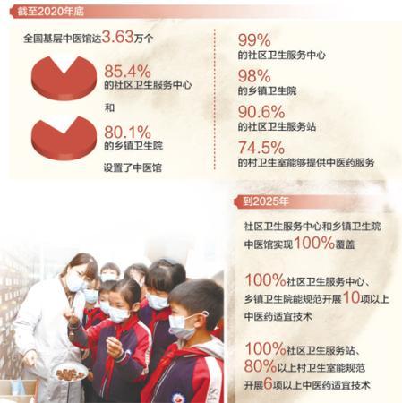 充分發(fā)揮中醫(yī)藥在基層健康服務(wù)中的獨(dú)特優(yōu)勢(shì),中醫(yī)館的作用不容忽視。今年3月,國家中醫(yī)藥管理局等10部門聯(lián)合印發(fā)的《基層中醫(yī)藥服務(wù)能力提升工程“十四五”行動(dòng)計(jì)劃》提出,到2025年,社區(qū)衛(wèi)生服務(wù)中心和鄉(xiāng)鎮(zhèn)衛(wèi)生院中醫(yī)館實(shí)現(xiàn)全覆蓋,鼓勵(lì)有條件的地方對(duì)15%的社區(qū)衛(wèi)生服務(wù)中心和鄉(xiāng)鎮(zhèn)衛(wèi)生院中醫(yī)館完成服務(wù)內(nèi)涵建設(shè)。