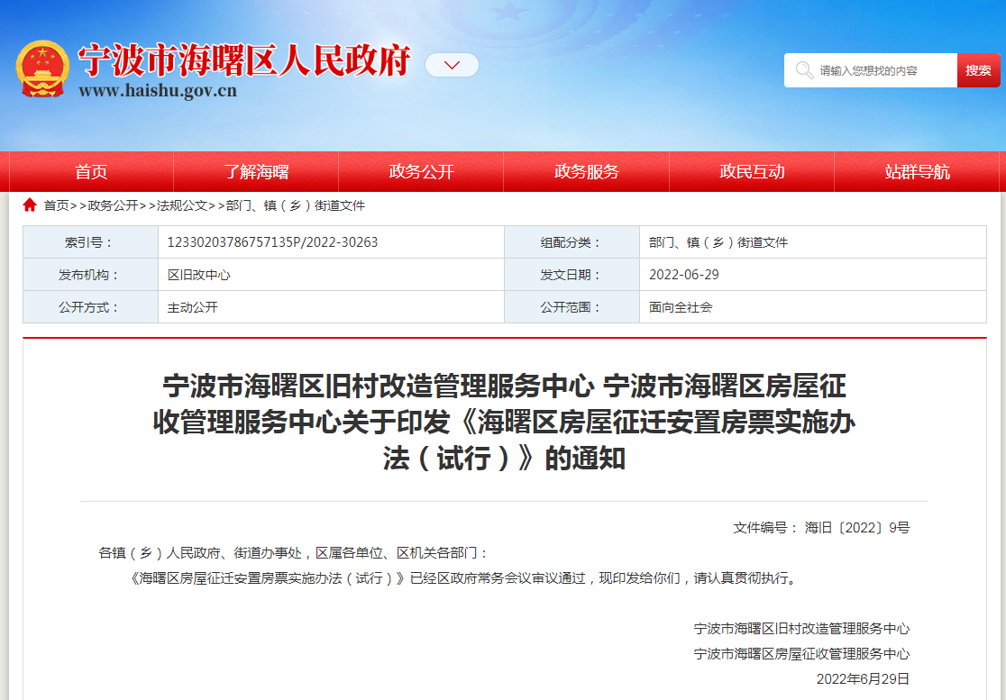 截圖自寧波市海曙區(qū)政府官網(wǎng)
