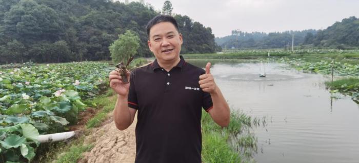 隨著鄉(xiāng)村振興全面推進,鄧述東又開始打造“一畝田脫貧”模式升級版——“深耕一畝田”。2021年年初,鄧述東團隊與企業(yè)合作,在湘潭縣梅林橋現(xiàn)代農(nóng)業(yè)示范園流轉(zhuǎn)耕地1100余畝(包含部分魚塘、荷塘),引進廣東一家澳洲青蝦繁育企業(yè),采取“蓮+蝦”“稻+蝦”、水塘“魚+蝦”等模式進行試驗養(yǎng)殖,蝦苗成活率接近100%,成長速度達到預(yù)期目標。
